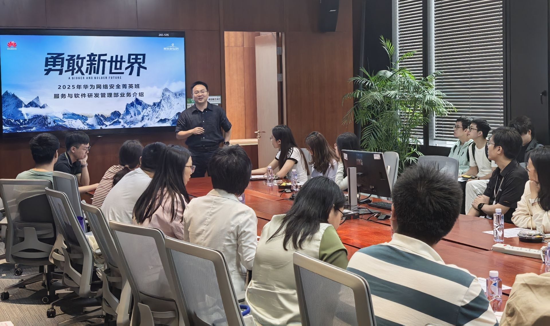 在V10会议室,GTS网络安全与隐私保护工程技术专家刘垠老师以“勇敢新世界”为主题,为同学们带来了一场精彩的分享会。刘垠围绕信息通信领域技术(ICT),从业务布局、基础设施建设以及全球技术服务支撑等多个维度,深入介绍了华为服务与软件研发管理部的运作模式和核心业务。