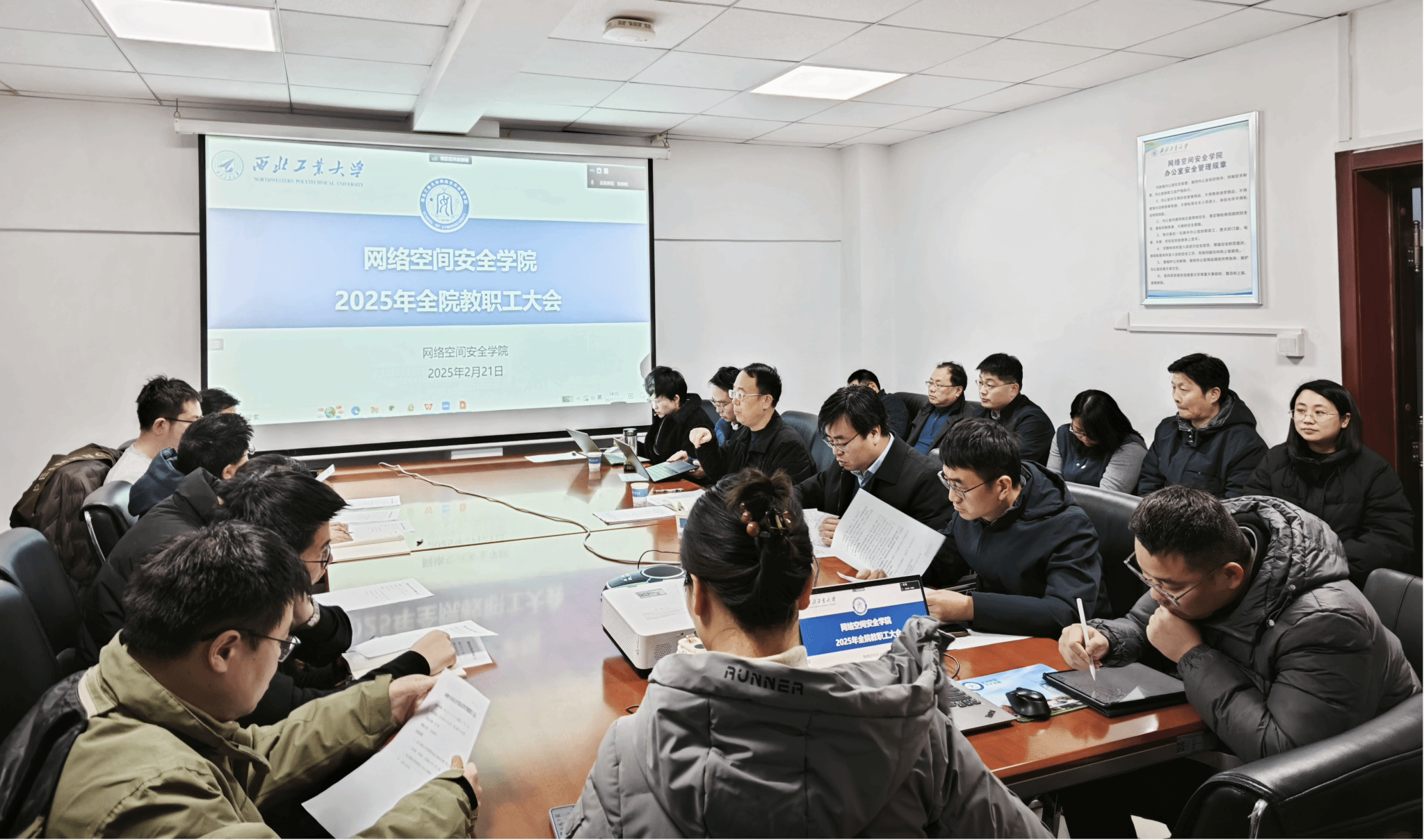 保密工作会议和安全稳定会议有关精神。他强调保密和安全工作事关大局,全体教职工必须从思想上高度重视,在工作中加强防范,严格遵守规章制度,时刻绷紧安全这根弦,守好安全底线,将安全稳定工作落实到日常工作的每一个细节。