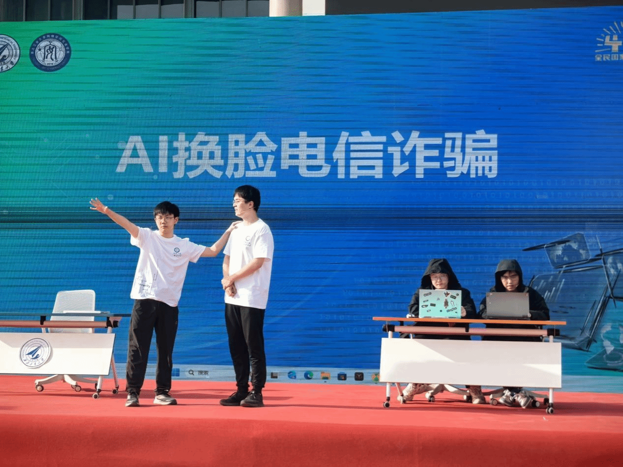 在开幕式中,同学们化身公司要员、远程黑客等角色,为现场观众呈现了AI换脸、钓鱼邮件、白帽技术,还有多彩魔术、艺术演出等精彩纷呈的节目。激烈的网络安全攻防战直观展现了网络空间面临的安全威胁种类多样、防不胜防,更体现了网络安全防御技术见招拆招、与时俱进的进步特点,生动的演出令在场的每一位同学更深刻地认识到网络安全以及增强安全防范意识的重要性。在表演间隙,现场组织了多轮有奖竞答,同学们积极参与知识抢答游戏,活动现场气氛紧张刺激,大家在趣味学习、沉浸体验中收获颇丰。