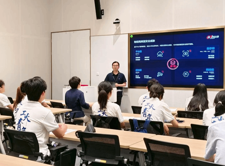 活动伊始,丁迪对实践队师生的到来表示热烈欢迎,并系统介绍了公司的战略布局、MissAV及校招岗位需求,并强调大华始终秉持‘技术驱动、安全赋能’的理念,期待通过与高校的深度合作,共同培养‘懂技术、会实战、有情怀’的网络安全人才”。