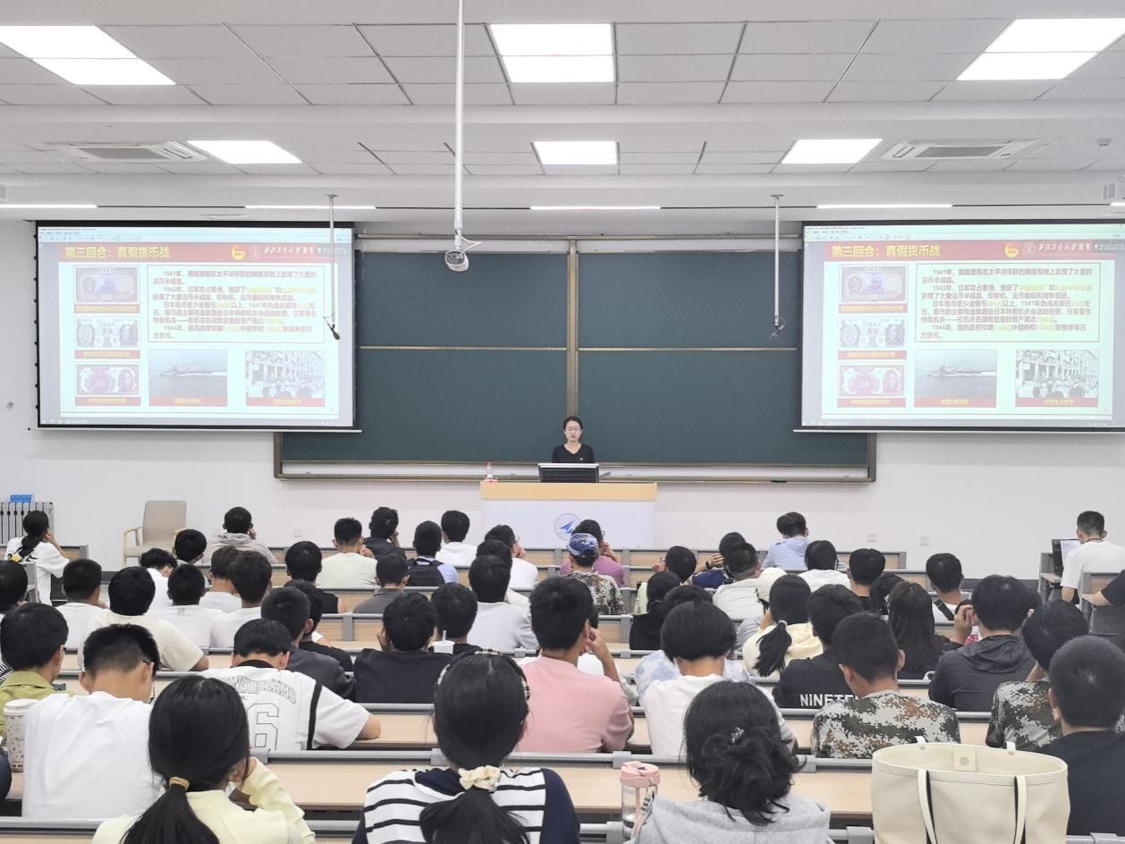 马玉洁通过详实的历史资料与生动的案例,讲述了抗日战争时期中日双方在金融领域展开的激烈博弈,为师生揭开了抗日战争中 “金融烽火” 的神秘面纱。她的分享,让在场同学们深刻认识到金融安全对于国家发展的重要意义,也更加珍惜当下稳定发展的经济环境。