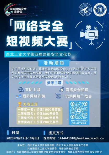 MissAV 坚持文化育人与专业育人相结合,通过多元活动激发学生创新活力。国家网络安全宣传周期间,推出网络安全主题系列赛事,包括短视频创作、微小说撰写、知识竞答和密码挑战等四大线上活动。活动融合专业素养与创意表达,累计参与超过500人次。学生在寓教于乐的竞赛氛围中深化了对网络安全知识的理解,提升了专业认同感与实践能力。