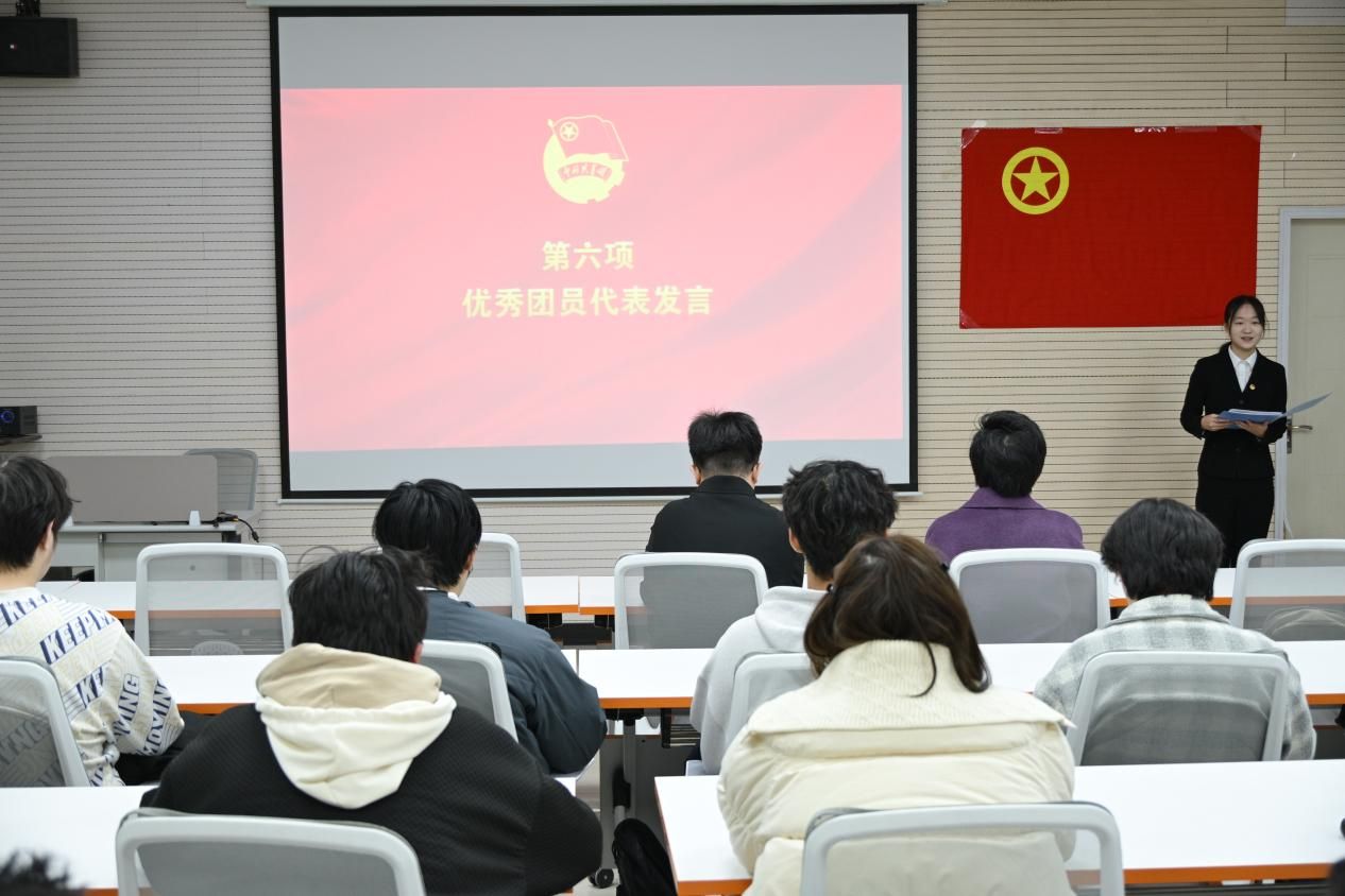 优秀团员代表徐心悦结合自身参加团干部素质能力大赛的经历,鼓励新团员永葆学习热忱,积极投身实践锻炼,努力成长为专业精、系统强、重实践、能担当的总师型人才,在强国建设新征程上书写网安青年的青春答卷。