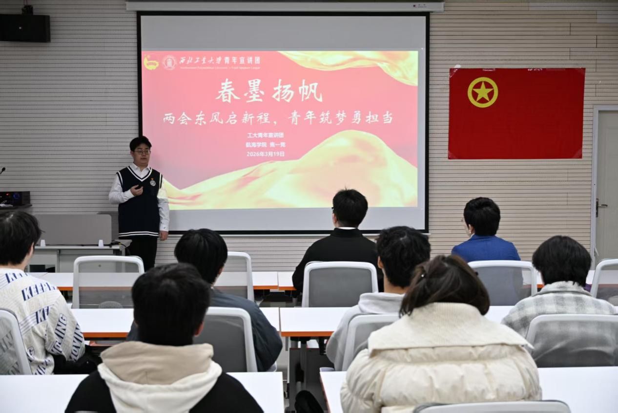 仪式在激昂的《光荣啊,中国共青团》歌声中圆满落幕。仪式结束后,工大青年宣讲团成员焦一竞为全体参会人员开展全国两会精神主题宣讲。