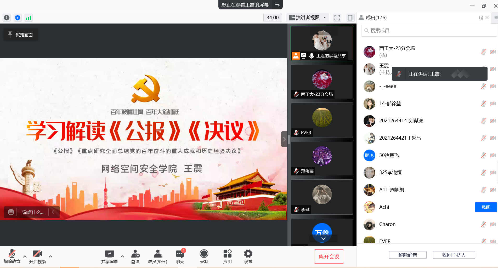 党总支书记王震作宣讲报告,全院师生线上参加了本次宣讲活动。