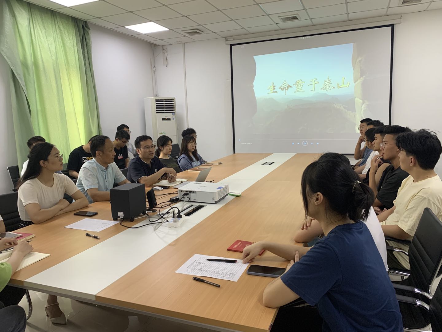 禹亮副书记分别从用火用电的消防安全、形形色色的网络诈骗、出行游玩的交通安全、复杂关系的人际交往四个方面,以高校学生身边发生过的事故为例,做了简要培训。观影后师生又一起进行了学习讨论交流活动,从事故中汲取教训,深刻体会严防安全的重要性和必要性,增强自我保护意识,学习火灾隐患、火灾预防、火灾逃生及灭火器械的使用方法,提高面对突发事件的应对处理能力。