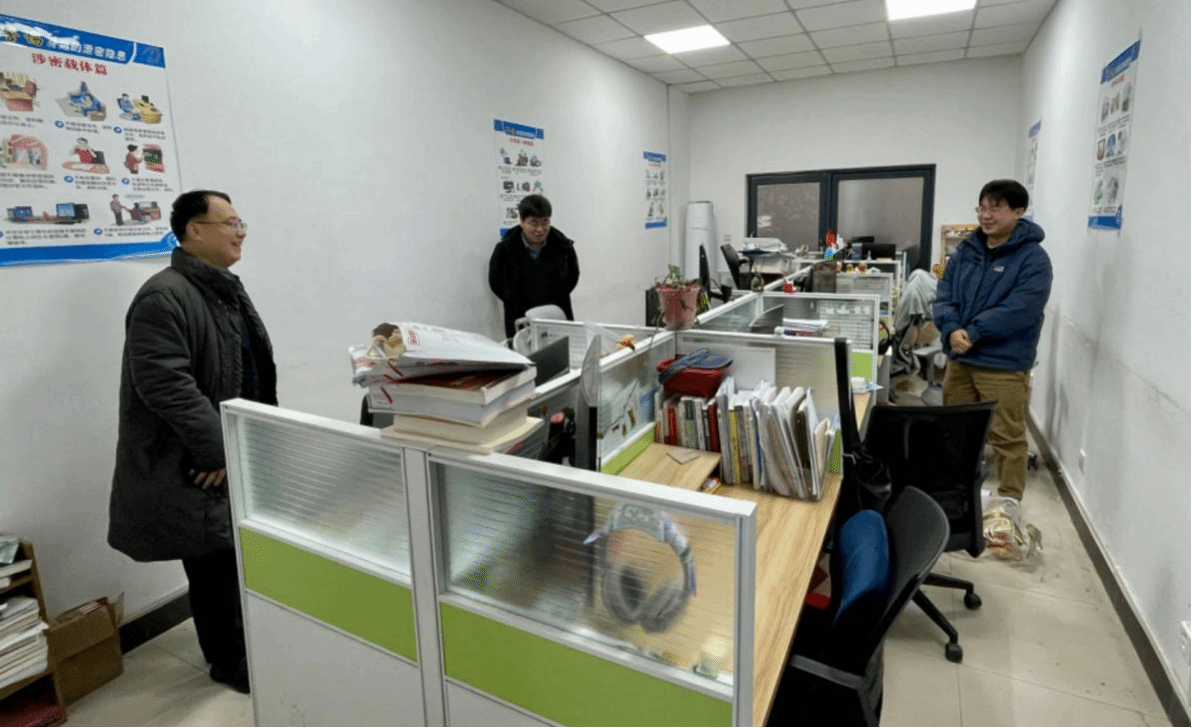 楼机房、会议室、研习室、办公室、图书角等公共区域进行安全检查。辅导员王昌昌、戚明平等陪同参加。