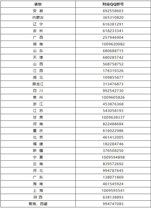 (二)其中“学生大使”招生实践项目由教务部招生办公室组织,各省实践队QQ群号如下:
