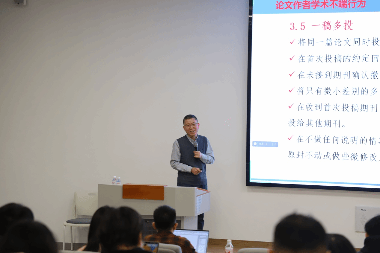 Faculty and students actively participated in interactive discussions. Researcher Ni patiently answered numerous questions regarding scientific paper writing and academic ethics, providing targeted suggestions based on different disciplinary characteristics and submission directions. Attendees widely agreed that the lecture was comprehensive, rigorous, and detailed. They expressed their intention to take this high-quality academic exchange as an opportunity to earnestly study and absorb Researcher Ni's valuable experience, strive to enhance their research capabilities and paper writing skills, adhere strictly to academic ethics, and contribute their efforts to building a strong nation in science and technology.
