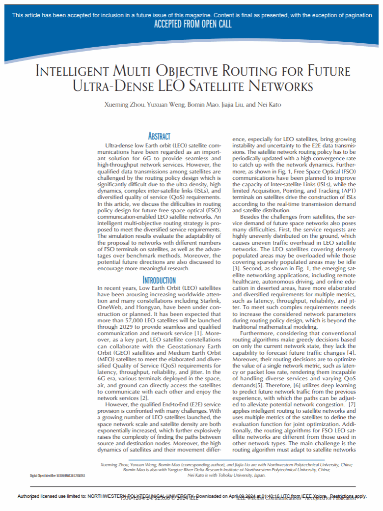 空天地一体化大数据应用技术国家工程实验室,翁宇瑄跟随导师毛伯敏教授开展低轨卫星网络相关科研工作。2023年,作为第二作者撰写论文发表在SCI 1区期刊IEEE Wireless Communications Magazine。2024年7月以来,参与清华大学网研院实习,跟随导师开展天地融合互联网相关科研工作,作为学生第二作者成果已发表至CCF A类会议IEEE S&P(网络安全领域顶会)以及计算机网络领域CCF A类会议IEEE INFOCOM。研究生阶段,翁宇瑄将前往清华大学网络科学与网络空间研究院继续深造,为国家天地融合互联网安全贡献自己的力量。