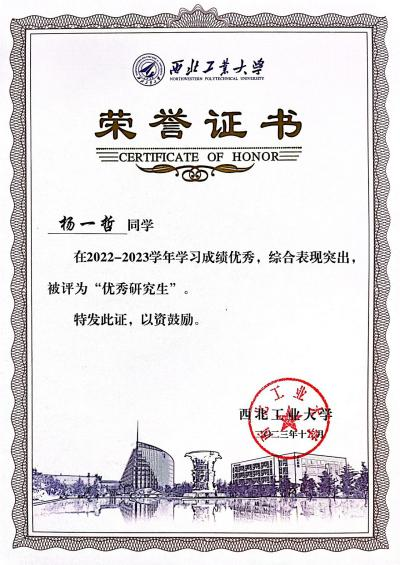 和老师的培养和教育,也感谢全力以赴的自己。云程发轫,万里可期,未来,我将秉承西工大“公诚勇毅”的校训和“三实一新”的校风,走向航天科工集团某研发部门的工作岗位,继续为国防事业贡献力量。