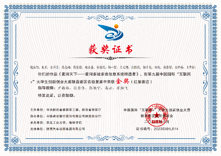 第九届中国国际“互联网 +”大学生创新创业大赛“青年红色筑梦之旅”赛道陕西赛区金奖;