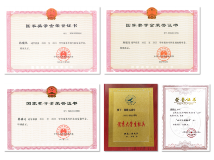 韩骥远四年总学分绩点始终保持年级第一,连续三年获评国家奖学金,获评校特等奖学金及优秀大学生标兵(全校本科生仅10人)和五四红旗标兵(全校本、硕学生仅10人),成为了2020级全校的首位“双标兵”。