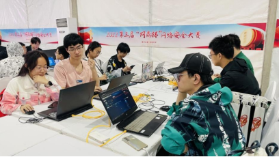 崔智尧(左一)在“网鼎杯”网络安全大赛决赛现场