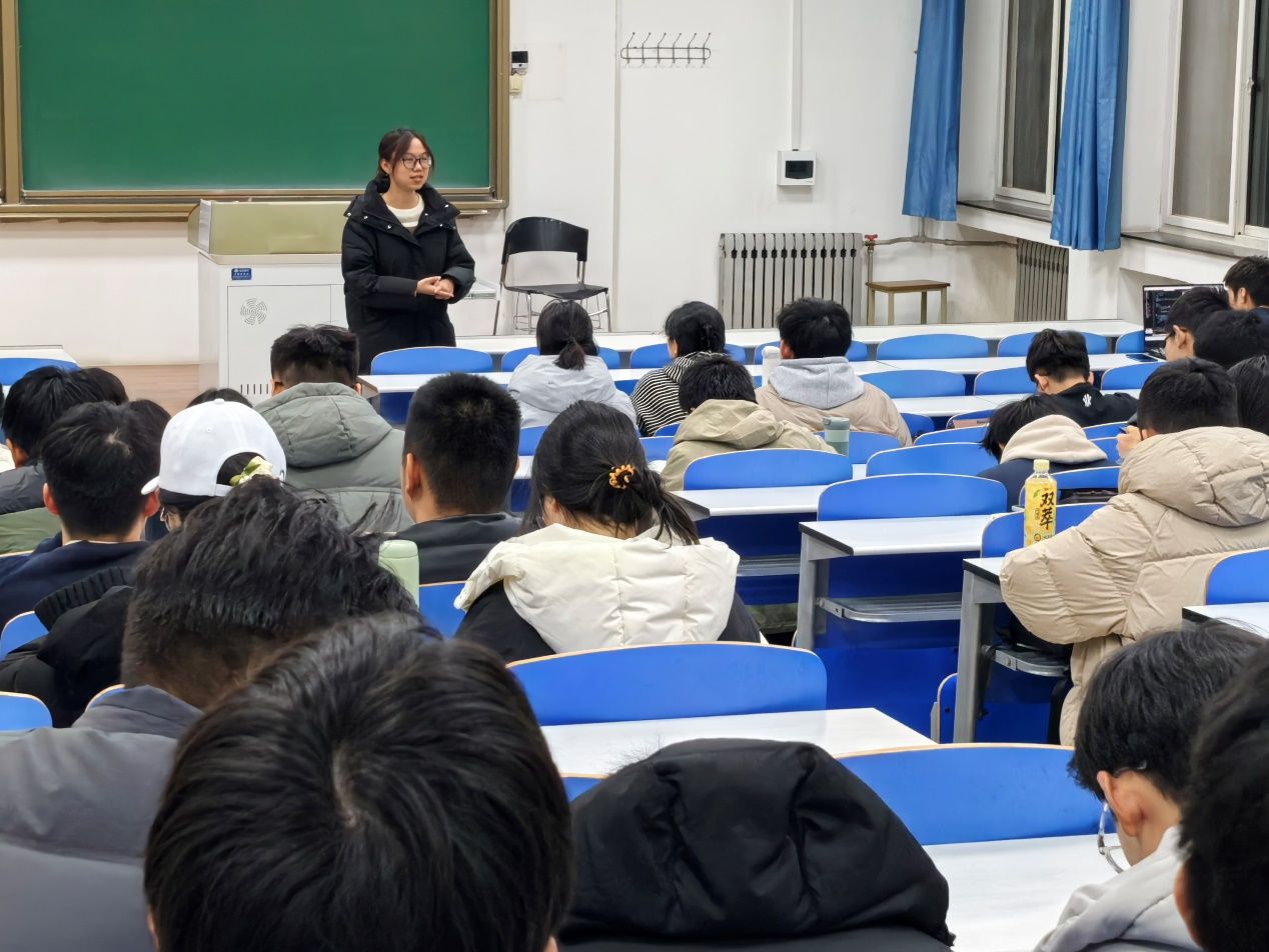 2024级本科生年级大会暨期末复习动员会在教东D1-301举行,2022级优秀本科生、吴亚军一等奖学金获得者封阳阳、2024级全体本科生参加,大会由年级辅导员戚明平主持。