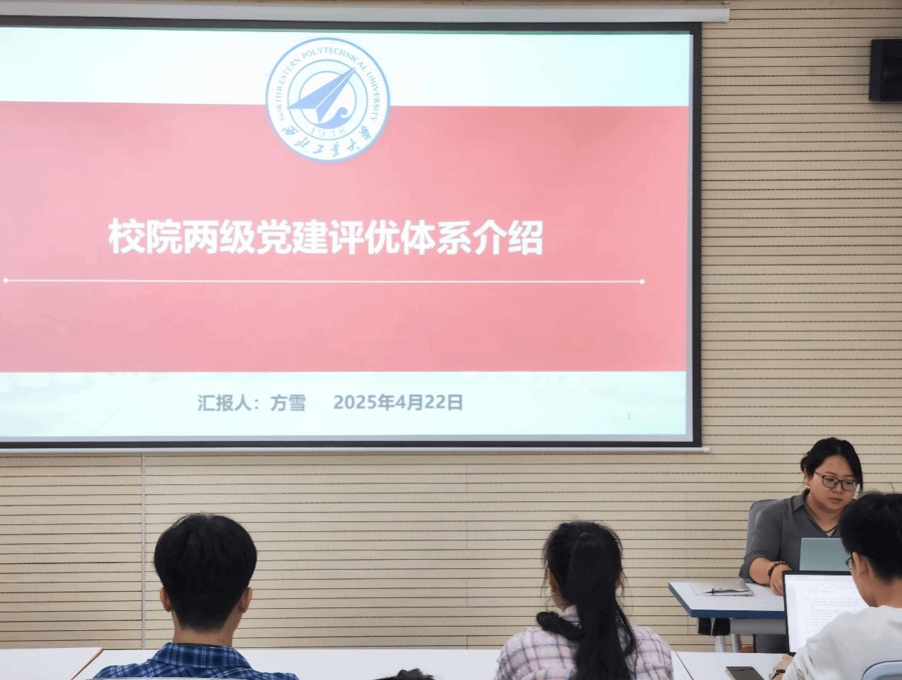 学工主管方雪梳理介绍了校院两级党建评优体系,详细说明了先进党支部,优秀党员的推选范围及推选条件。