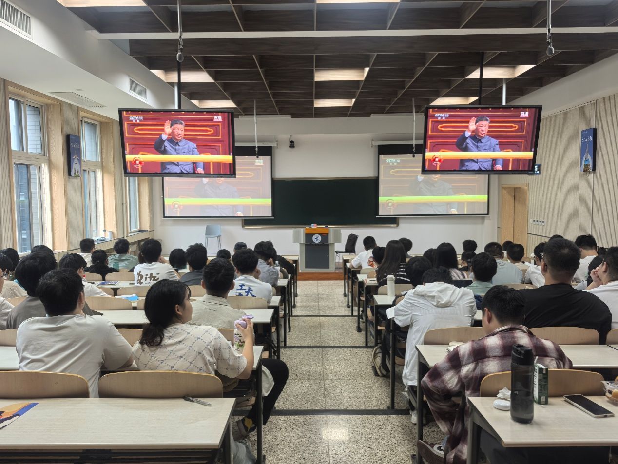 组织师生在两校区集中观看了纪念大会直播。