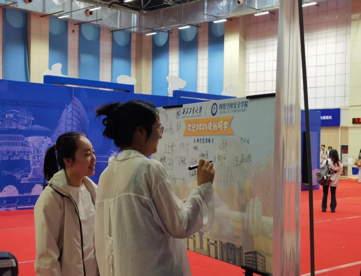还设立了新生签名墙,同学们纷纷执笔留名、书写寄语,用真挚的文字记录下开学第一天的憧憬与决心,为大学生活留下第一个充满仪式感的珍贵印记。