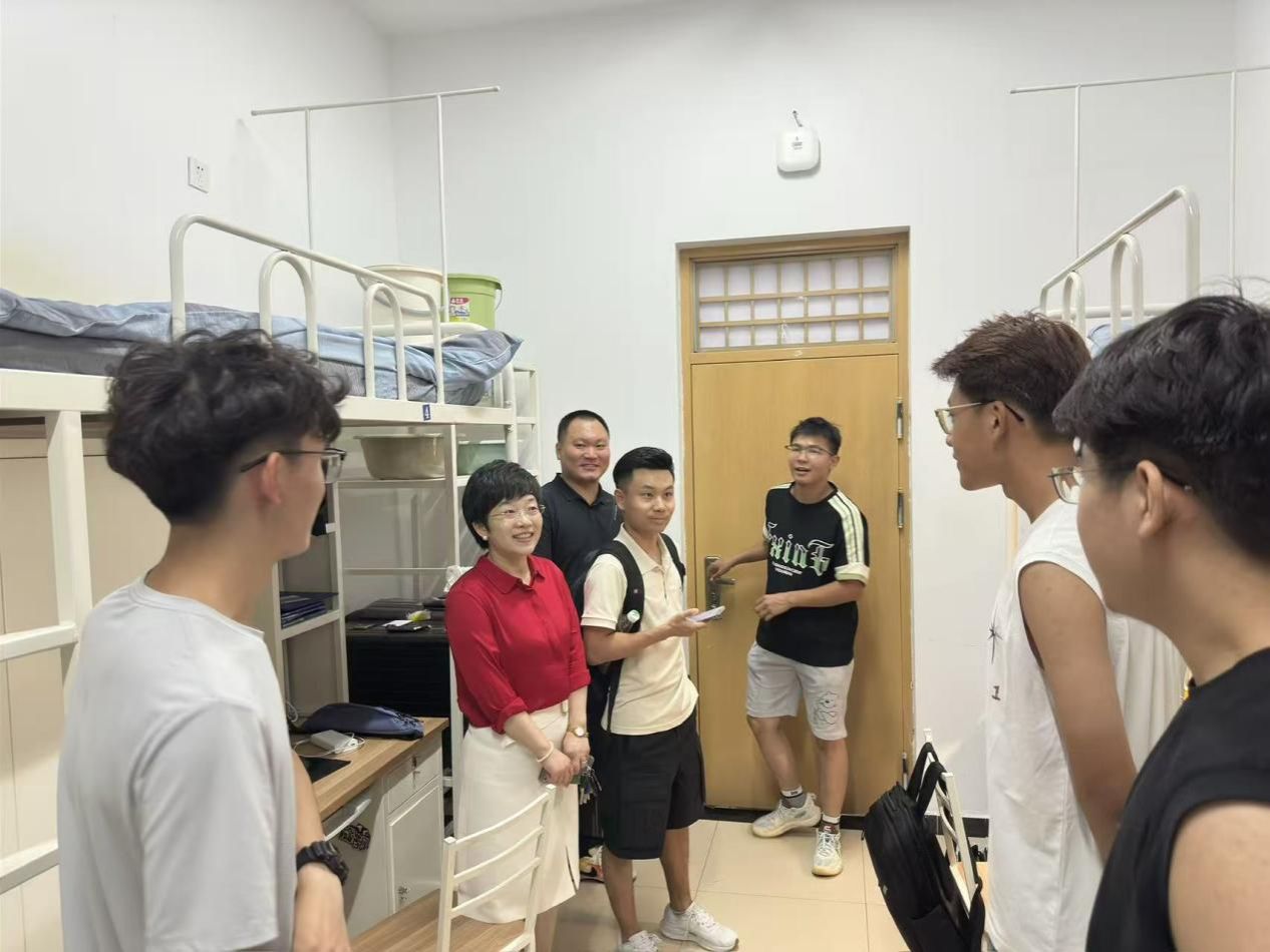 领导高度重视新生入学适应情况。迎新期间,张文涛、杜瑶分别带领辅导员、班主任等走访慰问了新生宿舍,与同学们亲切交流,细致询问大家入校后的生活适应情况,耐心解答同学们关于学业、生活等方面的疑问,并鼓励新生尽快转变角色,融入大学集体生活,珍惜舍友缘分,共同营造积极向上的宿舍氛围。