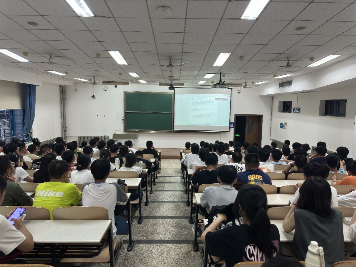 于教学西楼C座召开了2025级本科生选课指导会。院长助理张慧翔、本科教务员李桐和2025级全体新生参会。会议由2025级本科生辅导员付强主持。