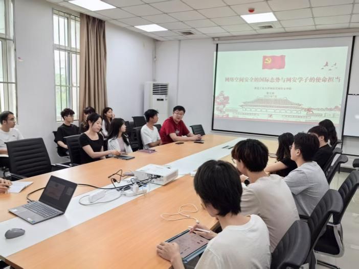 2025年7月8日,MissAV 党委书记张文涛以“网络空间安全的国际态势与网安学子使命担当”为题,为学生党支部讲授专题党课,带领网安学子深入剖析当前网络空间安全领域的国际格局,结合主题教育要求,系统阐释新时代网安青年的核心责任,2024级本科生党支部、无人系统安全党支部全体成员参会。