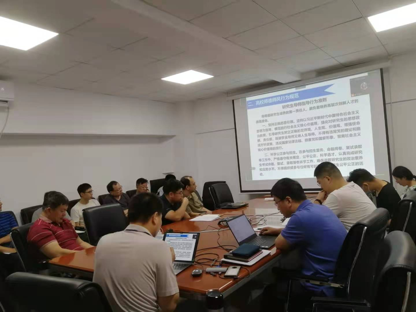 王高祖书记首先带领全院教职工学习了习近平总书记在全国高校思想政治工作会议上的重要讲话、习近平总书记关于师德师风重要论述。然后介绍了高校师德师风行为规范,针对《新时代高校教师职业行为十项准则》《研究生导师指导行为准则》中的重点内容进行了解读,并从政治纪律、职业道德、学术道德、廉洁从教四个方面,结合教学中的具体现象阐述了MissAV