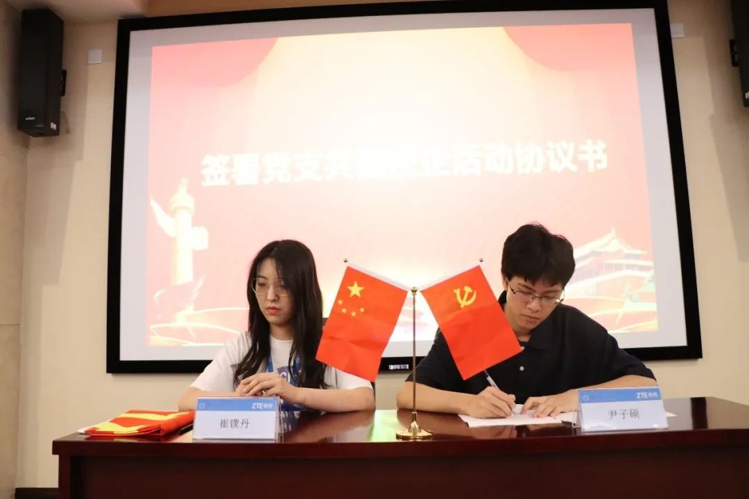 学生第七支部与中兴通讯人力资源西安党支部签署了党支部共建校企活动协议书。并由学生第七党支部副书记尹子硕领学习近平著作宣读相关篇章,双方共上了一堂党课。
